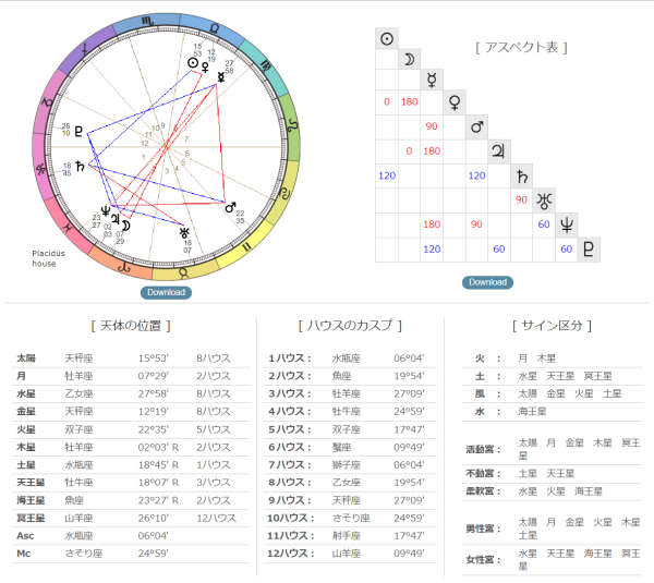 MCが魚座、月は12H、水星太陽は4H、火星は蟹座で私は全体的に「水っぽい」と感じました。